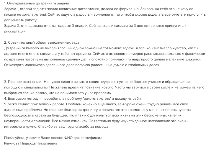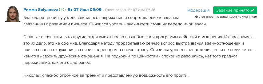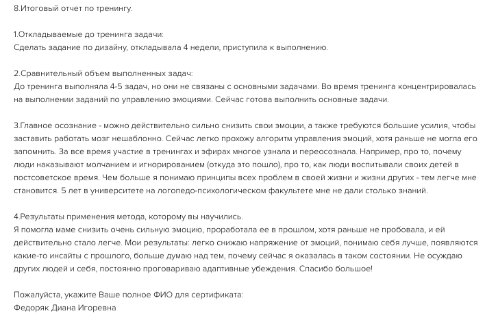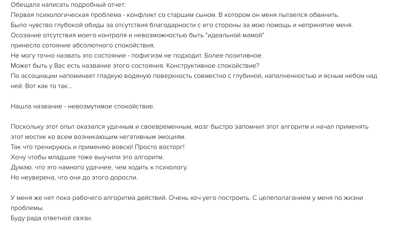 - Отработаете до результата 3-5 ситуаций, в которых уберете эмоции, научитесь справляться с переживаниями