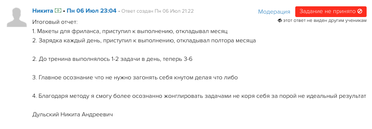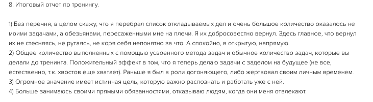 - Отработаете до результата задачи, которые откладываете